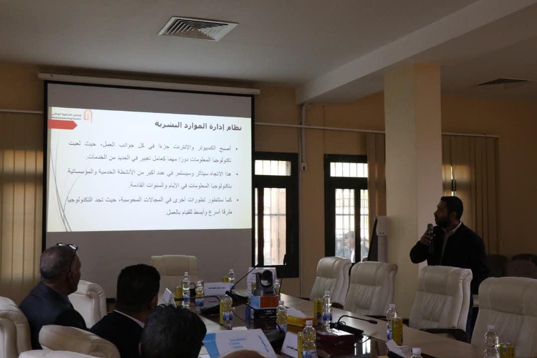 ايضاً تم مناقشة برامج تطوير أداء مجالس ومكاتب التخطيط بالمناطق من خلال إدخال الميكنة والمنظومات الموحدة ، وفي هذا الشأن قدم المهندس أحمد الجربي مدير مكتب المشروعات عرضاً موسعاً حول نظام إدارة الموارد البشرية والتي تساعد على تدفق البيانات والمعلومات بين الجهاز الإداري للمجلس وبين مجالس ومكاتب التخطيط بالمناطق والتي تقوم بتبسيط عمل إدارة شؤون الإدارية بالاحتفاظ بملفات الموظفين وتمكين المسؤولين من تتبع أداء الموظفين وتحديد مشاكل الموارد البشرية قبل حدوثها والولوج إلى المنظومة في أي مكان وزمان في حال توفر الانترنت.