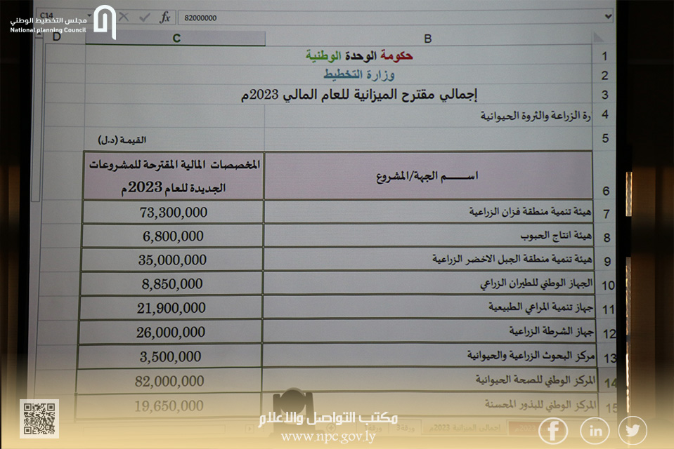 قدم مندوب وزارة الزراعة والثروة الحيوانيّة السيد/ م. خالد الجزار رئيس قسم التخطيط بالوزارة عرضاً متضمناً أهم المستهدفات المقترحة بميزانية التحول للعام (2023) لوزارة الزراعة والثروة الحيوانيّة والجهات التابعة لها مسلطاً الضوء على أهم المشروعات والبرامج التنموية التي تم اقتراحها بمشروع الميزانية العامة (2023م).