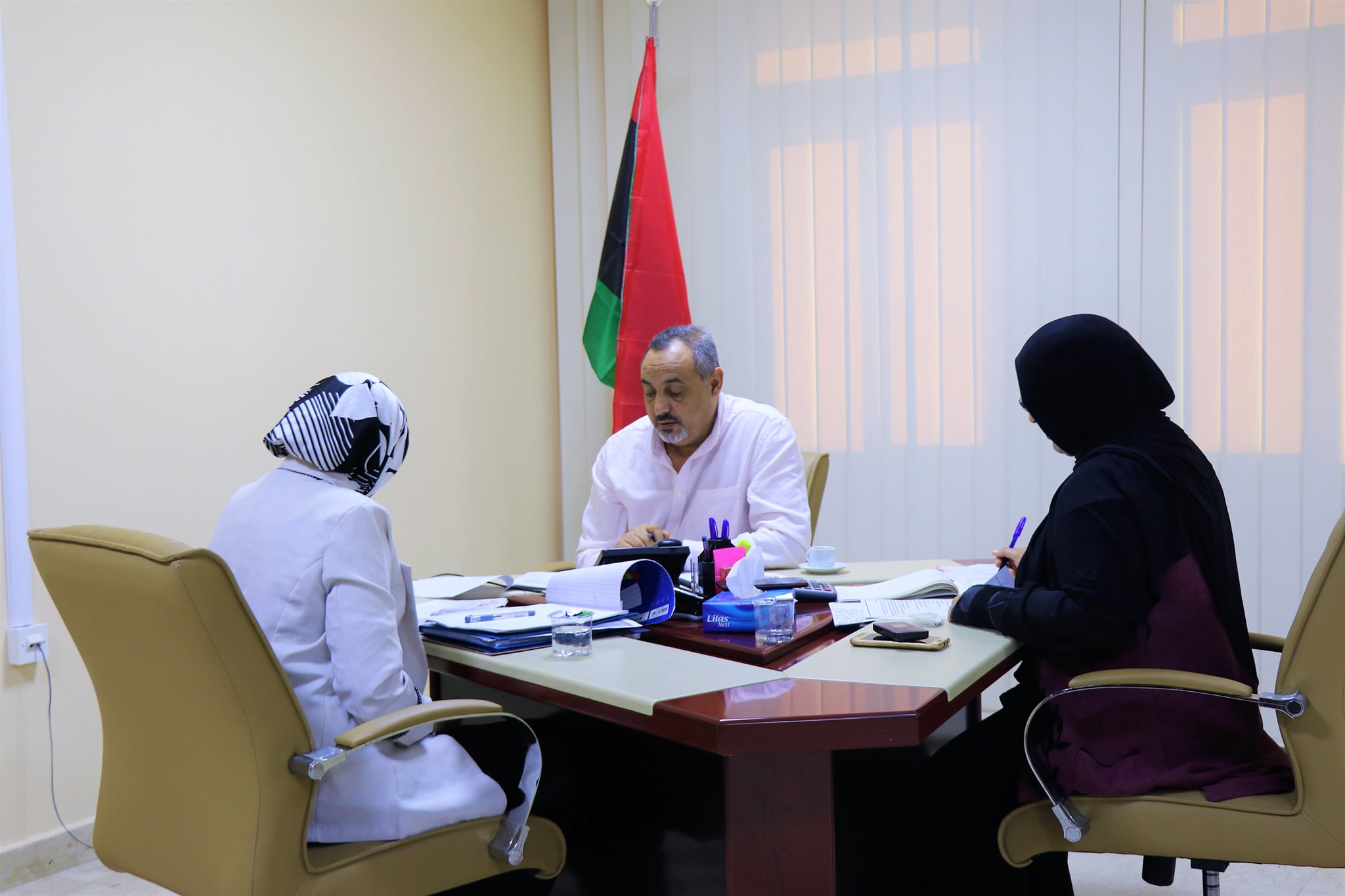 تحت شعار : نحو تعزيز دور الشباب الليبي في التنمية والاستثمار ، إلتقى معالي رئيس مجلس التخطيط الوطني الدكتور. مفتاح عبدالواحد الحرير بالسيدة / مارن خالد التائب صباح يوم الثلاثاء الموافق 16/11/2021م بمكتبه ، لمناقشة المقترح المقدم بشأن الملتقى الشبابي الليبي العربي وذلك بحضور السيدة / أسماء البشير الشائبي مدير مكتب التنمية المكانية بالمجلس .