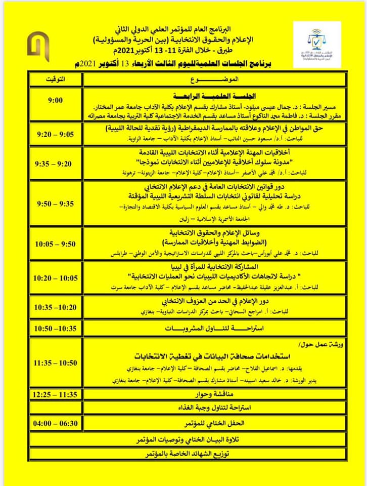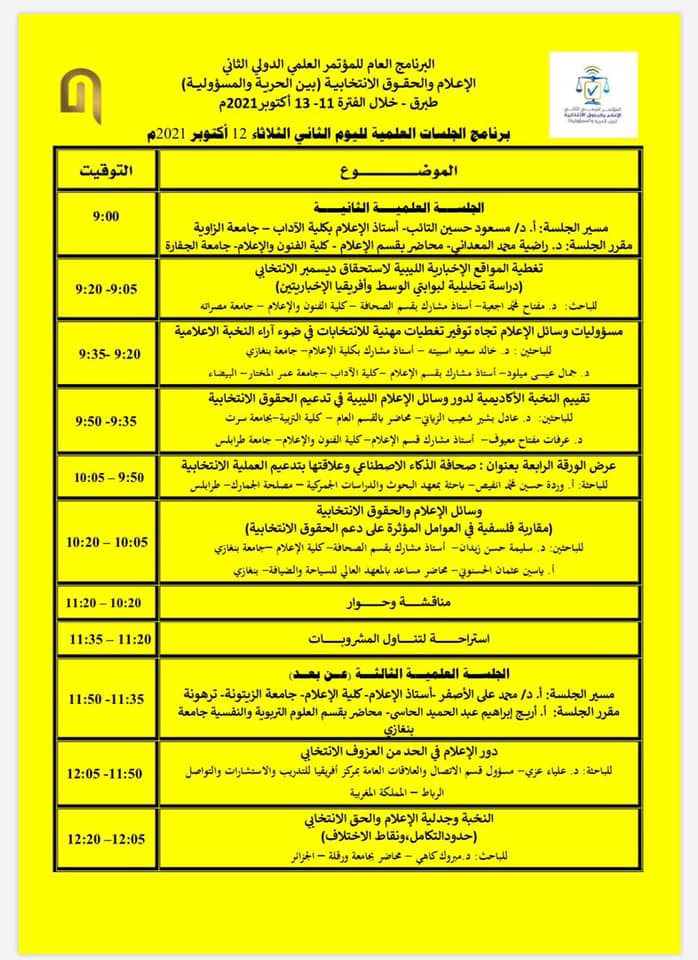 البرنامج العام للمؤتمر العلمي الثاني الاعلام والحقوق الانتخابية بين الحرية والمسؤولية