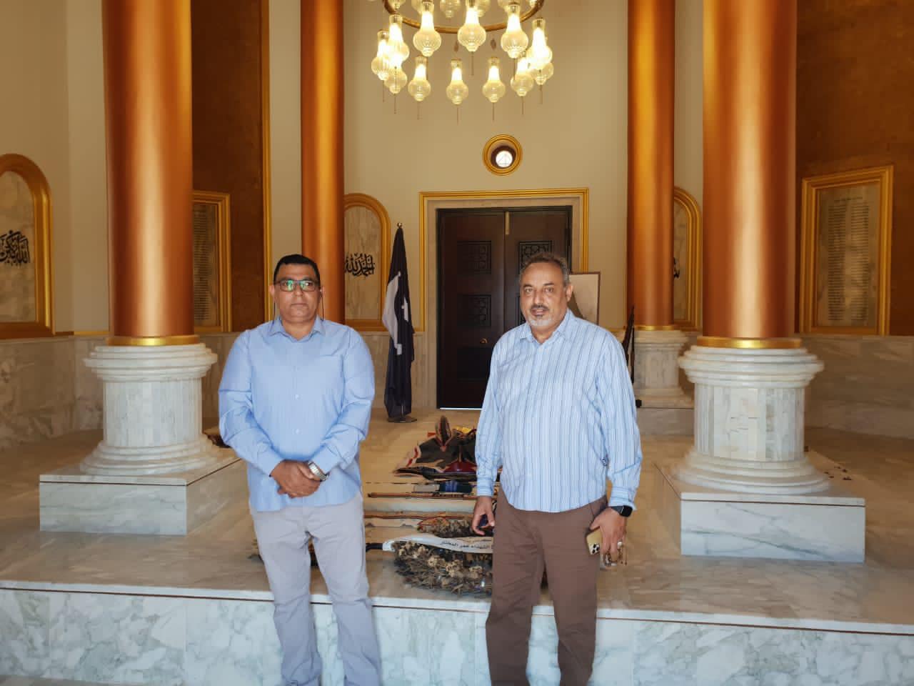 الدكتور مفتاح الحرير رئيس مجلس التخطيط الوطني رفقة الدكتور اشرف الكريمي يزوران الدكتور فرج نجم مدير مركز السلام ، بمقر ادارة ضريح شيخ الشهداء عمر المختار بعد تجديده.بحي الصابري
