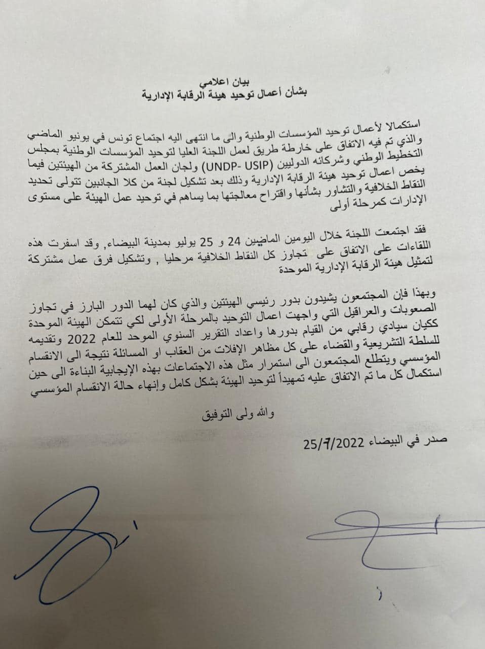 واستئناف عملية توحيد الهيئة ككيان سيادي رقابي .