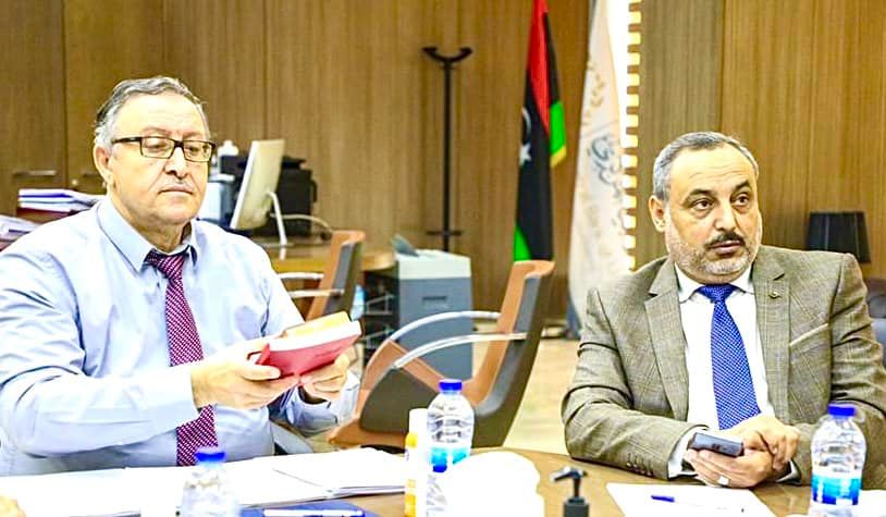 عقد صباح يوم الاربعاء الموافق 23 فبراير 2022م اجتماع بمقر مصرف ليبيا المركزي بنغازي بشأن مناقشة الجدول الموحد لمرتبات العاملين بالوظيفة العامة والمحال لمجلس التخطيط الوطني للدراسة مع لجنة التخطيط والمالية والموازنة العامة بمجلس النواب بحضور كل من :