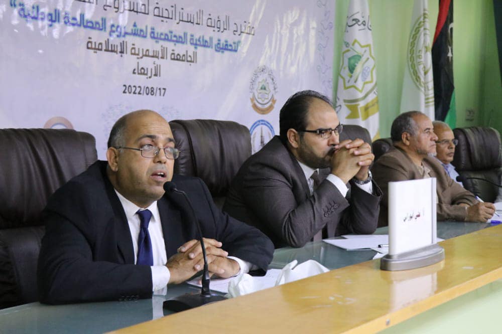 عقدت صباح الإربعاء الموافق 2022/8/17م بمدرج الجامعة الأسمرية الإسلامية بمدينة زليتن الندوة السادسة حول مقترح الرؤية الاستراتيجية لمشروع المصالحة الوطنية لتحقيق الملكية المجتمعية، التي أشرف على إعدادها خبراء مختصين في عديد المجالات من مجلس التخطيط وتبناها المجلس الرئاسي وبمشاركة مركز دراسات القانون والمجتمع بجامعة بنغازي، وذلك لمناقشة عديد المقترحات والآراء والتوصيات حول الرؤية.