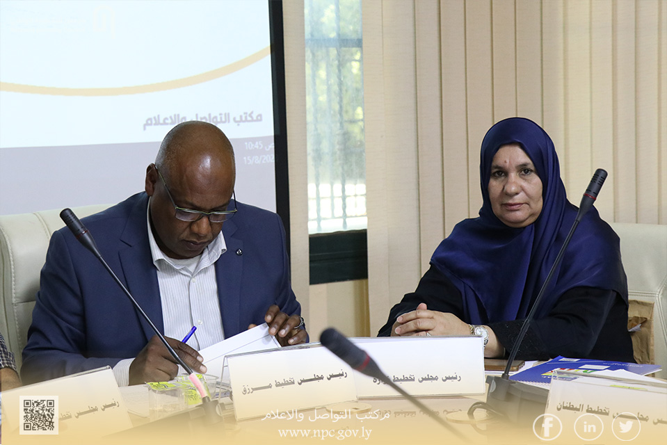 تحت شعار تفعيل دور مجلس التخطيط الوطني ومجالس التخطيط بالمناطق في تحقيق تنمية مكانية متوازنة وفقا للقانون رقم (13) لسنة 2000 بشأن التخطيط و اللوائح الصادرة بمقتضاه ، عقد صباح يوم الثلاثاء الموافق 15 اغسطس 2023م اجتماعاً برئاسة الأستاذ أحمد خليفة ابريدان رئيس مجلس التخطيط الوطني وبحضور الاستاذ انور الشارف وكيل عام المجلس والسيدين عضوي لجنة إدارة المجلس والسادة رؤساء مجالس التخطيط بالمناطق و بمشاركة السيد المستشار الأول للمجلس والسادة مدراء الإدارات والمكاتب بديوان المجلس.