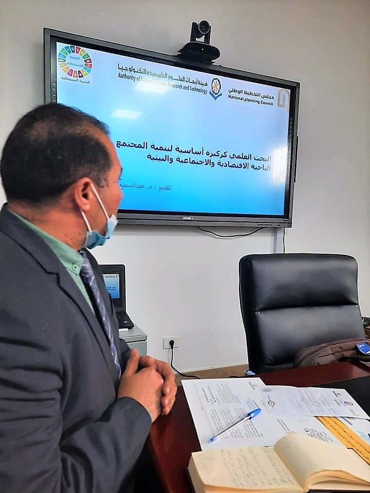 بدعوة كريمة من هيئة البحوث الطبيعية والتكنولوجيا ومنتدى التنمية المستدامة التابع للهيئة شارك الدكتور. مفتاح عبدالواحد الحرير رئيس مجلس التخطيط الوطني بالندوة العلمية التي نظمتها هيئة البحوث حول اسهامات البحث العلمي في تنفيذ أهداف التنمية المستدامة 2030م بحضور كل من :