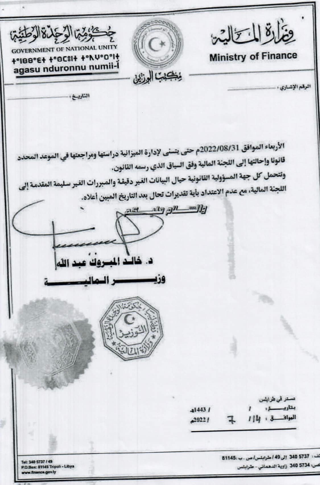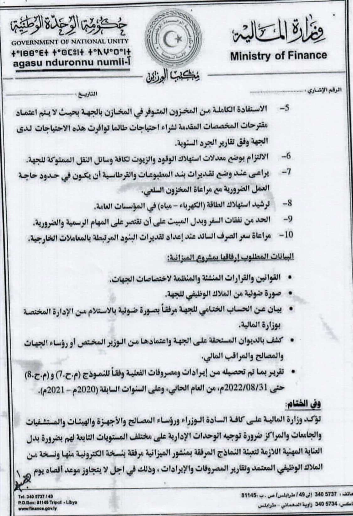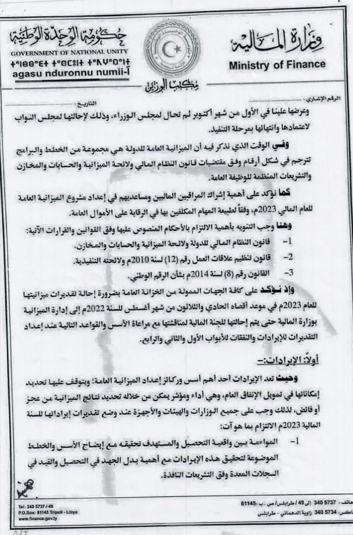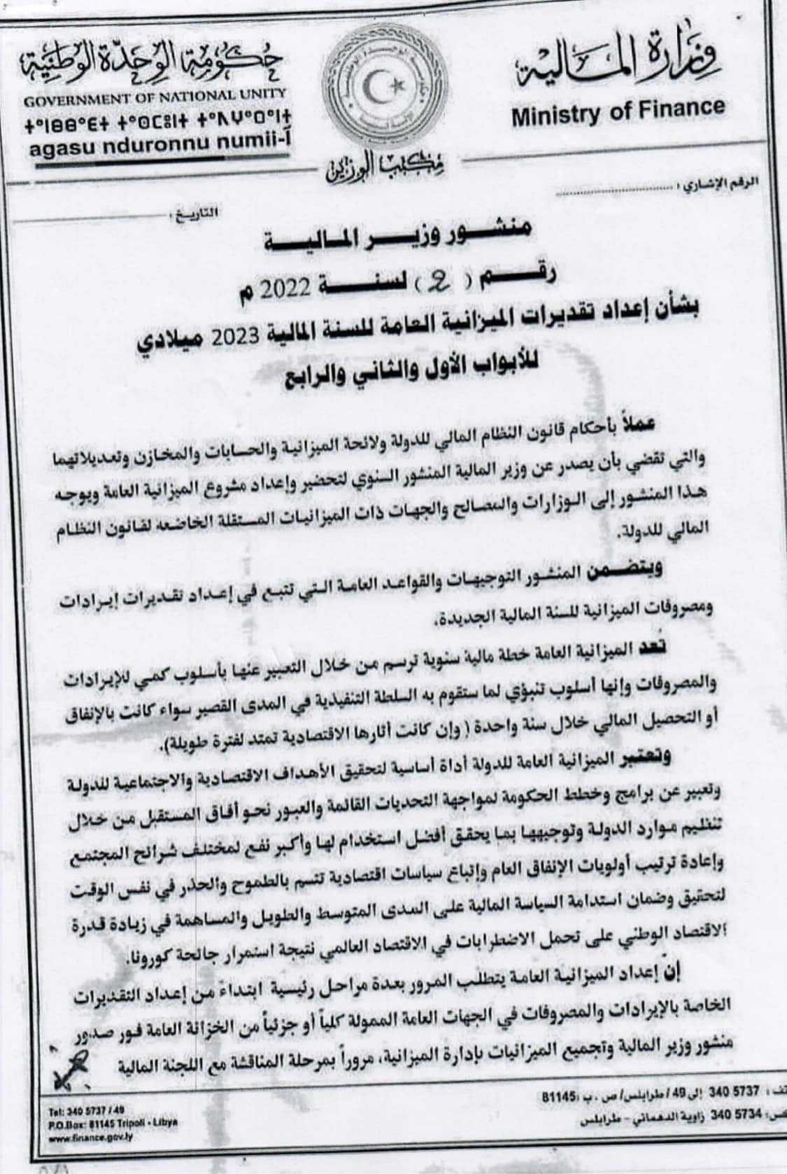 منشور السيد وزير الماليه بشأن اعداد تقديرات الميزانيه العامة للعام 2023 م